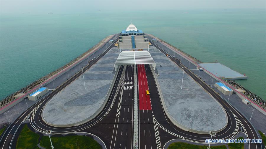 ZHUHAI, octubre 24, 2018 (Xinhua) -- Vista aérea de automóviles transitando sobre el puente Hong Kong-Zhuhai-Macao, el 24 de octubre de 2018. El puente Hong Kong-Zhuhai-Macao, el puente marítimo más largo del mundo, abrió oficialmente al tránsito a las 9:00 horas del 24 de octubre. (Xinhua/Liang Xu)