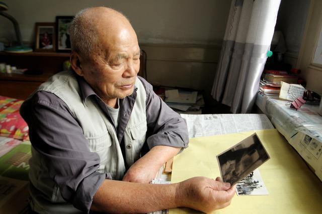Cheng Guoshun, un conductor de tren jubilado, observa una vieja foto de él en el trabajo en Zhengzhou, provincia de Henan, centro de China, el 16 de octubre de 2018. [Foto / IC]