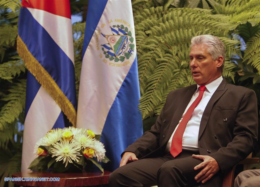 LA HABANA, octubre 25, 2018 (Xinhua) -- El presidente de Cuba, Miguel Díaz-Canel, reacciona durante su reunión con el presidente de El Salvador, Salvador Sánchez Cerén, en el Palacio de la Revolución en La Habana, Cuba, el 25 de octubre de 2018. El presidente de El Salvador, Salvador Sánchez Cerén, colocó una ofrenda floral al Héroe Nacional de Cuba, José Martí, en el memorial que lleva su nombre en La Habana, capital de Cuba, y posteriormente se reunió con su homólogo cubano, Miguel Díaz-Canel, como parte del programa que el presidente centroamericano lleva a cabo durante su visita a Cuba, y que culminará el próximo sábado, de acuerdo con información de la prensa local. (Xinhua/Yander Zamora/POOL)