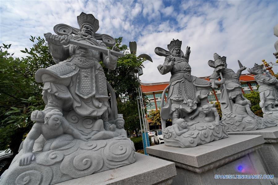 FUJIAN, octubre 25, 2018 (Xinhua) -- Imagen del 24 de octubre de 2018 de una vista de esculturas de piedra en un mercado de artesanías, en Putian, provincia de Fujian, en el sureste de China. La industria de las artesanías en Putian ha creado cerca de 300,000 empleos y alcanzó un valor de producción anual de 46.57 mil millones de yuanes (aproximadamente 6.71 mil millones de dólares estadounidenses) en 2017. (Xinhua/Zhang Guojun)