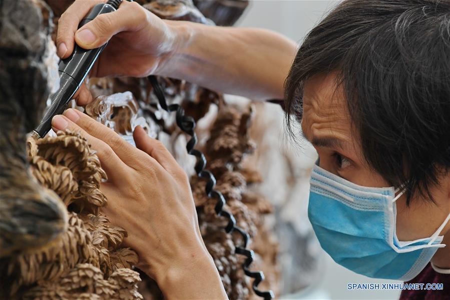 FUJIAN, octubre 25, 2018 (Xinhua) -- Imagen del 23 de octubre de 2018 de un artista elaborando una talla de madera, en Putian, provincia de Fujian, en el sureste de China. La industria de las artesanías en Putian ha creado cerca de 300,000 empleos y alcanzó un valor de producción anual de 46.57 mil millones de yuanes (aproximadamente 6.71 mil millones de dólares estadounidenses) en 2017. (Xinhua/Zhang Guojun)