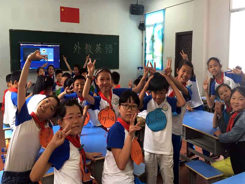 Desde el 2016, al igual que los otros estudiantes de la escuela primaria Xinxing, el peque?o Yang tiene dos profesores de inglés: un docente chino que imparte la clase presencial, mientras que el maestro extranjero ense?a en línea, a miles de kilómetros de distancia.