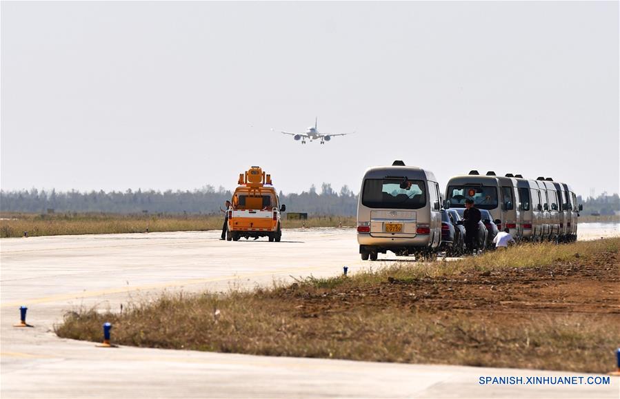 El avión grande de pasajeros C919 No.102 se prepara para aterrizar en el Aeropuerto Yaohu de Nanchang, en la provincia de Jiangxi, en el este de China, el 27 de octubre de 2018. El avión avión C919 No.102 aterrizó en el Aeropuerto Yaohu de Nanchang después de un vuelo del Aeropuerto de Dongying Shengli de la provincia de Shandong, en el este de China. El avión será sometido a rigurosas pruebas en ese aeropuerto. (Xinhua/Hu Chenhuan)