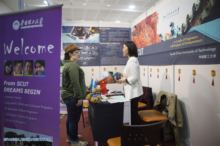 BUENOS AIRES, octubre 26, 2018 (Xinhua) -- Una visitante recibe información en un estand de una universidad china durante la "Primera Feria de Educación Superior China en Argentina", en la sede de la Facultad de Ciencias Económicas de la Universidad de Buenos Aires, en la ciudad de Buenos Aires, Argentina, el 26 de octubre de 2018. Estudiantes de Argentina pusieron el viernes de manifiesto el interés que genera la oferta académica de universidades chinas, en el marco de la "Primera Feria de Educación Superior China en Argentina", realizada el viernes en la sede de la Facultad de Ciencias Económicas de la Universidad de Buenos Aires con la participación de 23 casas de estudio del país asiático. La actividad estuvo organizada por el China Scholarship Council (CSC), la agencia de intercambio educativo más grande del mundo, con el apoyo del Ministerio de Educación de China y la Embajada de China en Argentina. (Xinhua/Martín Zabala)