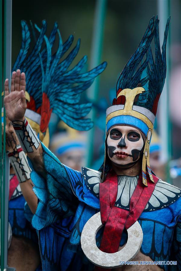 Una persona disfrazada participa en el Desfile de Día de Muertos 2018, en el marco de la celebración mexicana de Día de Muertos, en la Ciudad de México, capital de México, el 27 de octubre de 2018. De acuerdo con información de la prensa local, esta es la tercera edición del desfile, y comenzó en el monumento Estela de Luz y concluyó en el Zócalo de la capital de México. (Xinhua/Francisco Ca?edo)