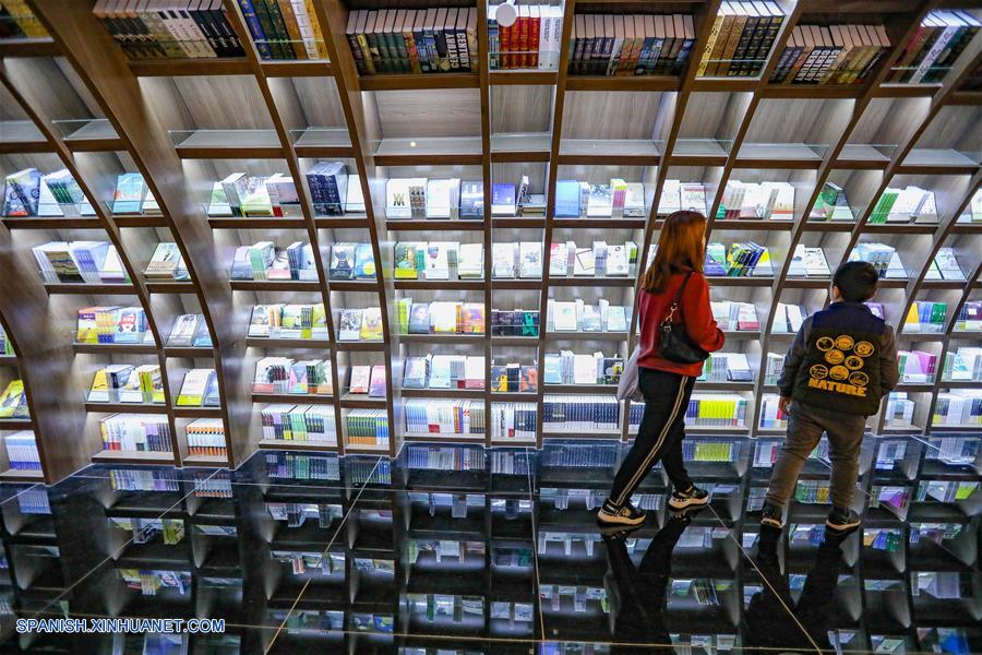 GUIZHOU, octubre 28, 2018 (Xinhua) -- Personas observan libros en una librería llamada Zhongshuge, en el distrito Guanshanhu de Guiyang, provincia de Guizhou, en el suroeste de China, el 28 de octubre de 2018. El dise?o de la librería Zhongshuge está inspirado en el único relieve kárstico en Guizhou. (Xinhua/Liu Xu)