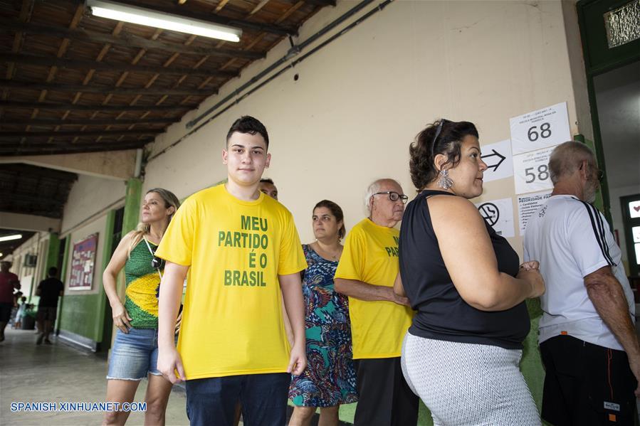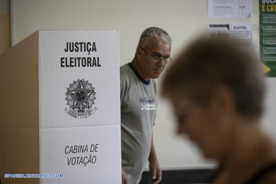 RIO DE JANEIRO, octubre 28, 2018 (Xinhua) -- Personas acuden a emitir su voto para la segunda vuelta de las elecciones generales, en una casilla electoral en Río de Janeiro, Brasil, el 28 de octubre de 2018. Los colegios electorales abrieron las puertas el domingo en Brasil a las 8:00, hora de Brasilia (11:00 GMT), para la segunda vuelta de las elecciones generales, en las que se elegirán al presidente y vicepresidente del país para los próximos cuatro a?os. (Xinhua/Li Ming)