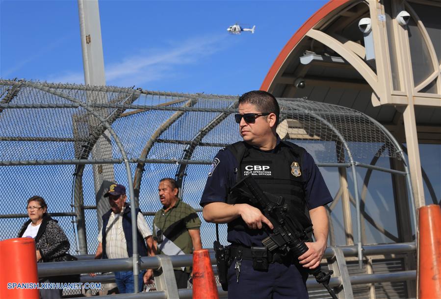 CIUDAD JUAREZ, octubre 29, 2018 (Xinhua) -- Un agente de la Oficina de Aduanas y Protección Fronteriza (CBP, por sus siglas en inglés) participa durante un simulacro de operativo en el Puente Internacional Paso del Norte, en Ciudad Juárez, estado de Chihuahua, México, el 29 de octubre de 2018. De acuerdo con información de la prensa local, los agentes federales de la CBP de Estados Unidos, realizaron un simulacro de operativo para recibir a la caravana de migrantes, con el objetivo de prepararse en caso de que un grupo de personas intente cruzar por la fuerza. El Pentágono desplegará 5,200 tropas en activo en la frontera entre Estados Unidos y México con el fin de disuadir a los integrantes de una caravana de migrantes que buscan ingresar de forma ilegal al país, anunció el lunes un funcionario. (Xinhua/Christian Torres)