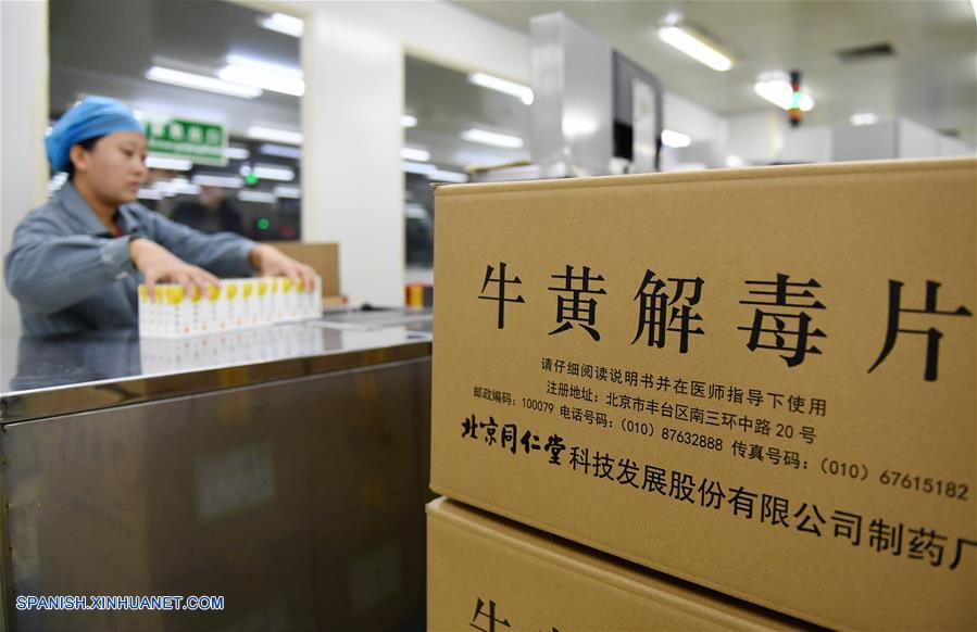 BEIJING, octubre 29, 2018 (Xinhua) -- Imagen del 24 de octubre de 2018 de una empleada empaquetando medicina en un taller de Tongrentang, una compa?ía farmacéutica con una historia de más de 300 a?os, en Beijing, capital de China. Fundada en 1669, Tongrentang es ahora un productor y distribuidor líder de medicina tradicional china en China, y ha obtenido una reputación mundial. Ha registrado su marca en más de 100 países y regiones. (Xinhua/Zhang Chenlin)