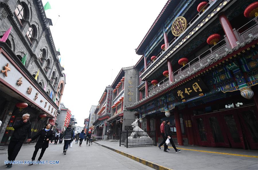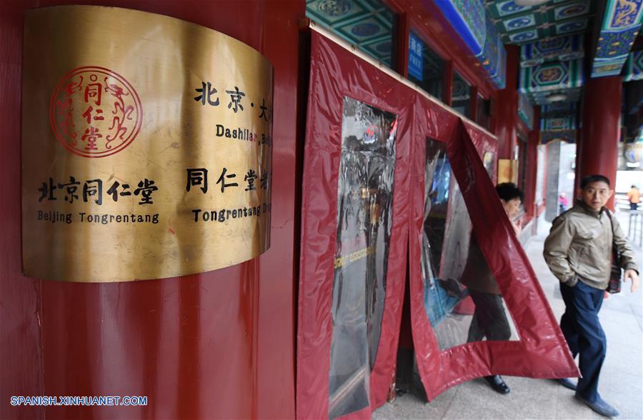 BEIJING, octubre 29, 2018 (Xinhua) -- Imagen del 25 de octubre de 2018 de turistas visitando una tienda de Tongrentang, una compa?ía farmacéutica con una historia de más de 300 a?os, en Beijing, capital de China. Fundada en 1669, Tongrentang es ahora un productor y distribuidor líder de medicina tradicional china en China, y ha obtenido una reputación mundial. Ha registrado su marca en más de 100 países y regiones. (Xinhua/Zhang Chenlin)