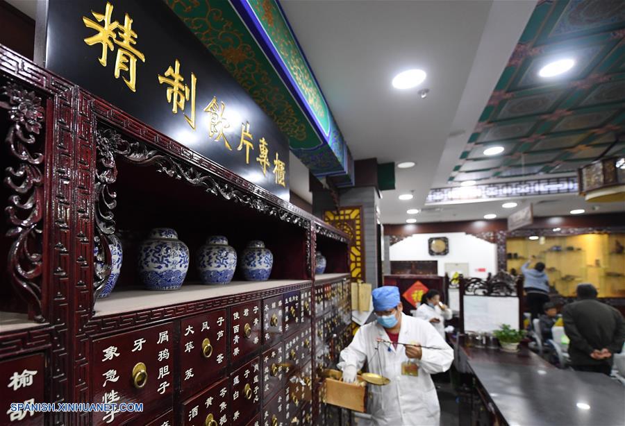 BEIJING, octubre 29, 2018 (Xinhua) -- Imagen del 25 de octubre de 2018 de un farmacéutico pesando hierbas en una farmacia de Tongrentang, una compa?ía farmacéutica con una historia de más de 300 a?os, en Beijing, capital de China. Fundada en 1669, Tongrentang es ahora un productor y distribuidor líder de medicina tradicional china en China, y ha obtenido una reputación mundial. Ha registrado su marca en más de 100 países y regiones. (Xinhua/Zhang Chenlin)