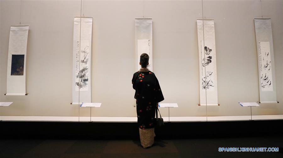 TOKIO, octubre 29, 2018 (Xinhua) -- Una visitante observa las obras de arte del artista chino Qi Baishi, durante una exposición previa en el Museo Nacional de Tokio, en Tokio, Japón, el 29 de octubre de 2018. La exposición que muestra más de 100 obras de arte elaboradas por Qi Baishi, recolectadas por la Academia de Bellas Artes de Beijing, será abierta al público desde el 30 de octubre. (Xinhua/Du Xiaoyi)