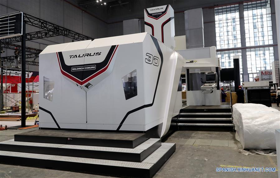 SHANGHAI, octubre 30, 2018 (Xinhua) -- Una fresadora Taurus de la fábrica de máquinas y herramientas alemana Waldrich Coburg es ajustada en una sala de exposición en el Centro Nacional de Exposiciones y Convenciones de Shanghai, en Shanghai, en el este de China, el 30 de octubre de 2018. El trabajo final está en marcha para preparar las ocho salas de exposición para la primera Exposición Internacional de Importaciones de China (CIIE, por sus siglas en inglés), programada para llevarse a cabo del 5 al 10 de noviembre. (Xinhua/Fang Zhe)