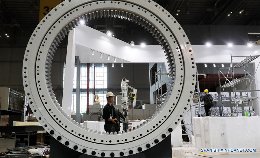 SHANGHAI, octubre 30, 2018 (Xinhua) -- Trabajadores instalan dispositivos en una sala de exposición en el Centro Nacional de Exposiciones y Convenciones de Shanghai, en Shanghai, en el este de China, el 30 de octubre de 2018. El trabajo final está en marcha para preparar las ocho salas de exposición para la primera Exposición Internacional de Importaciones de China (CIIE, por sus siglas en inglés), programada para llevarse a cabo del 5 al 10 de noviembre. (Xinhua/Fang Zhe)