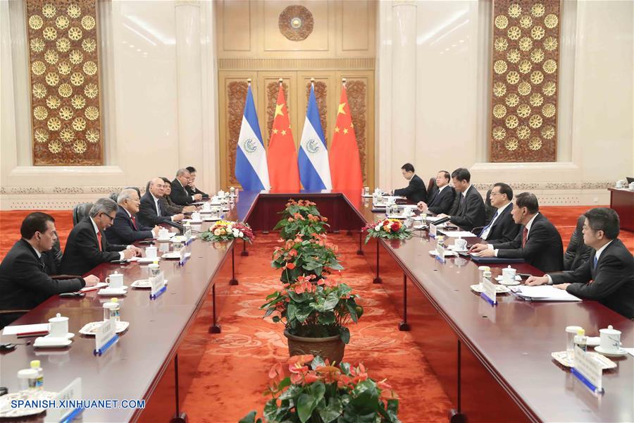 BEIJING, noviembre 2, 2018 (Xinhua) -- El primer ministro de China, Li Keqiang (3-d), se reúne con el presidente de El Salvador, Salvador Sánchez Cerén (3-i), quien se encuentra en una visita de Estado a China, en el Gran Palacio del Pueblo en Beijing, capital de China, el 2 de noviembre de 2018. Sánchez asistirá a la primera Exposición Internacional de Importaciones de China en Shanghai. (Xinhua/Liu Weibing)