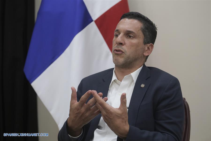 CIUDAD DE PANAMA, noviembre 4, 2018 (Xinhua) -- Imagen del 1 de noviembre del vicecanciller de Panamá, Luis Miguel Hincapié, participando en una entrevista exclusiva para la Agencia de Noticias Xinhua sobre la participación de Panamá en la Exposición Internacional de Importaciones de China (CIIE, por sus siglas en inglés), en la Ciudad de Panamá, capital de Panamá, el 4 de noviembre de 2018. La participación de Panamá en la CIIE que se realizará del 5 al 10 de noviembre en la ciudad de Shanghai, apoya la aspiración paname?a de constituirse en la puerta de entrada de China a América Latina. El vicecanciller de Panamá, Luis Miguel Hincapié, remarcó en entrevista con Xinhua en la sede de la cancillería, el interés paname?o en destacar en Shanghai sus ventajas competitivas y la visión país "como la gran conexión". (Xinhua/Mauricio Valenzuela