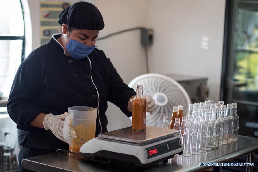 CUERNAVACA, noviembre 4, 2018 (Xinhua) -- Imagen del 25 de septiembre de 2018, de una chef de la empresa Biani, envasando salsas y aderezos artesanales, en Cuernavaca, estado de Morelos, México. La salsa, uno de los productos indispensables en la cocina y la mesa de los millones de mexicanos, trasciende fronteras, y ahora una peque?a productora familiar apuesta a sus productos para deleitar el paladar de los comensales en China. La empresa Biani, del central estado de Morelos, ha ganado la aceptación entre los mexicanos a tres a?os de su creación y, por vez primera, presentará sus productos en la Exposición Internacional de Importaciones de China (CIIE, por sus siglas en inglés), que se celebra del 5 al 10 de noviembre Shanghai y donde podrá conocer a potenciales compradores chinos. (Xinhua/Francisco Ca?edo)