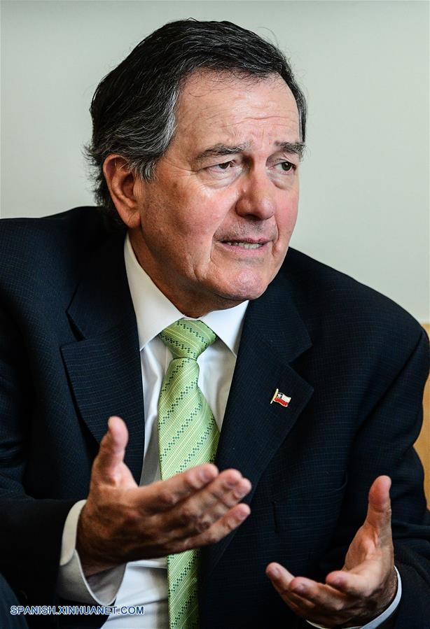 SANTIAGO, noviembre 4, 2018 (Xinhua) -- Imagen del 22 de octubre de 2018, del ministro de Relaciones Exteriores chileno, Roberto Ampuero, participando en una entrevista exclusiva con la Agencia de Noticias Xinhua, en la sede del Ministerio de Relaciones Exteriores, en Santiago, capital de Chile. China y Chile firmaron el viernes en Beijing un memorándum de entendimiento para impulsar conjuntamente la construcción de la Franja y la Ruta, acto que el ministro de Relaciones Exteriores chileno, Roberto Ampuero, calificó como punto de inicio de una nueva fase en las relaciones bilaterales. "Para Chile es una oportunidad muy interesante la que se abre, sobre todo en términos de infraestructuras", afirmó en una entrevista con Xinhua el ministro, quien se encuentra de visita en el país asiático para participar en la cuarta edición de la Semana de Chile en China (Chile Week China). (Xinhua/Jorge Villegas)