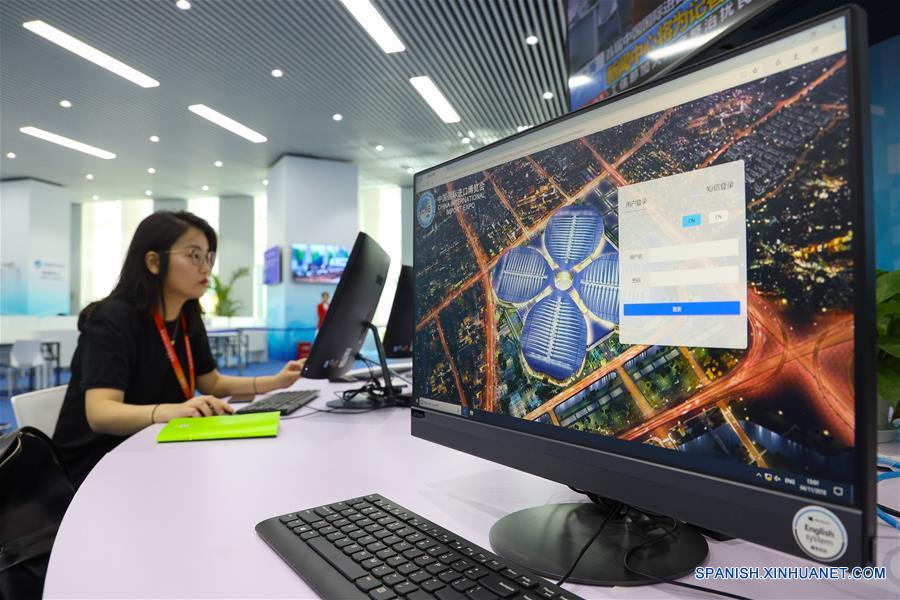 SHANGHAI, noviembre 4, 2018 (Xinhua) -- Una periodista trabaja en el Centro de Prensa de la Exposición Internacional de Importaciones de China (CIIE, por sus siglas en inglés), en Shanghai, en el este de China, el 4 de noviembre de 2018. El centro de prensa de la exposición fue abierto a los periodistas el domingo. (Xinhua/Liu Dawei)