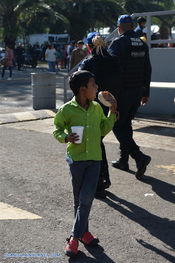 CIUDAD DE MEXICO, noviembre 5, 2018 (Xinhua) -- Un ni?o que participa en la caravana migrante, toma sus alimentos, en el Estadio Jesús Martínez "Palillo", en la Ciudad Deportiva Magdalena Mixhuca, en la Ciudad de México, capital de México, el 5 de noviembre de 2018. Más de 2,200 migrantes centroamericanos de la masiva caravana que atraviesa México rumbo a Estados Unidos han llegado a la capital del país desde el domingo, informaron el lunes autoridades locales. A su entrada a la Ciudad de México, los cientos de familias con ni?os o adultos que viajan solos son dirigidos a un albergue que se habilitó en un estadio ubicado en el este de la urbe. (Xinhua/Xin Yuewei)