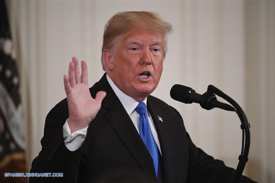 WASHINGTON D.C., noviembre 7, 2018 (Xinhua) -- El presidente estadounidense, Donald Trump, participa en una conferencia de prensa en la Casa Blanca, en Washington D.C., Estados Unidos, el 7 de noviembre de 2018. El presidente de Estados Unidos, Donald Trump, dijo el miércoles que almorzará con el presidente ruso Vladimir Putin, entre otros líderes, durante su viaje a París, pero que no se espera una reunión. (Xinhua/Hu Yousong)