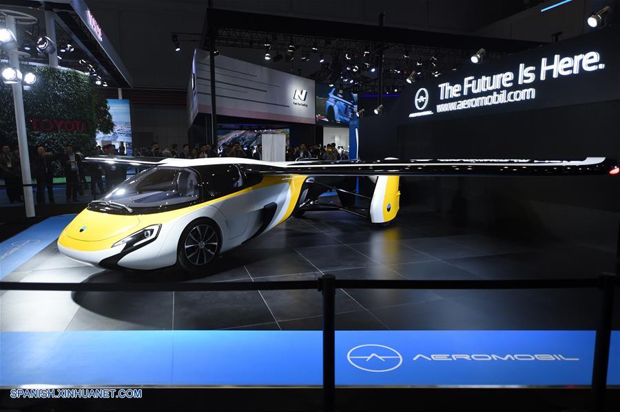 SHANGHAI, noviembre 7, 2018 (Xinhua) -- Visitantes observan el "automóvil volador" desarrollado por AeroMobil en la primera Exposición Internacional de Importaciones de China en Shanghai, en el este de China, el 7 de noviembre de 2018. (Xinhua/Han Yuqing)