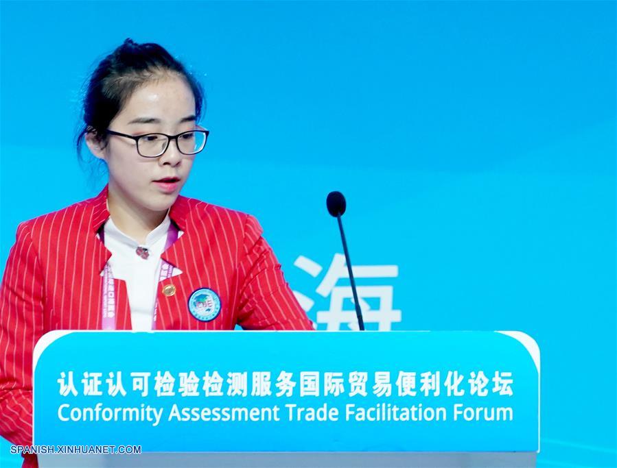 SHANGHAI, noviembre 7, 2018 (Xinhua) -- Mao Wei, una estudiante de la Universidad Normal del Este de China, prepara el proyector para un foro en la primera Exposición Internacional de Importaciones de China (CIIE) en Shanghai, en el este de China, el 7 de noviembre de 2018. Más de 5,400 voluntarios están sirviendo a la CIIE que se lleva a cabo del 5 al 10 de noviembre de 2018. (Xinhua/Chen Jianli)