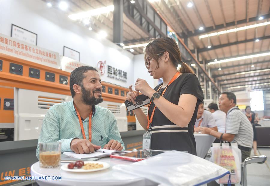 FUJIAN, noviembre 8, 2018 (Xinhua) -- El empresario egipcio Ahmad Zaky hace una orden a una expositora de maquinaria de piedra china, en la 19 Feria Internacional de la Piedra China Shuitou, en la localidad de Shuitou de Nan'an, en la provincia de Fujian, en el sureste de China, el 8 de noviembre de 2018. El evento de cuatro días de duración fue inaugurado el jueves, atrayendo expositores de más de 20 países y regiones. (Xinhua/Song Weiwei)