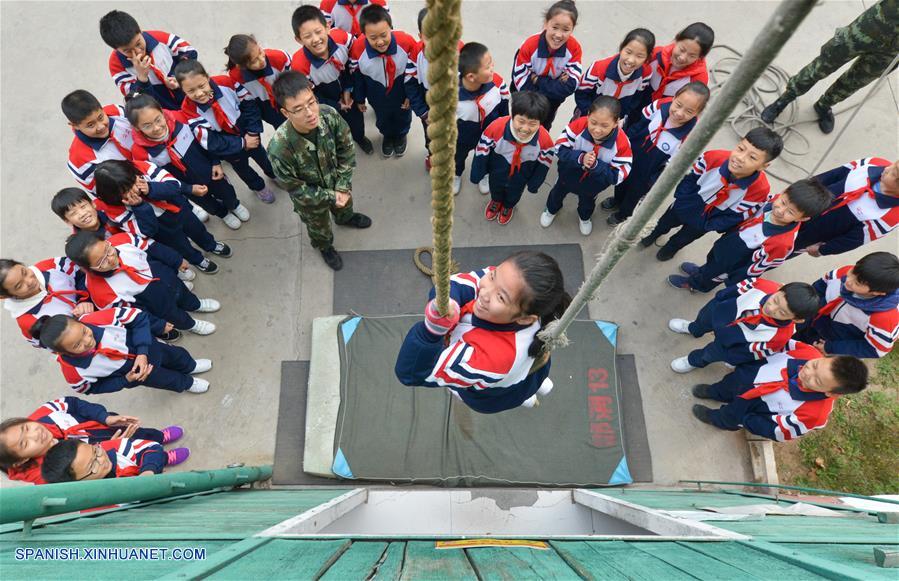 HEBEI, noviembre 8, 2018 (Xinhua) -- Una estudiante participa en una demostración de entrenamiento de extinción de incendios, en Handan, provincia de Hebei, en el norte de China, el 8 de noviembre de 2018. Campa?as de concienciación sobre seguridad contra incendios han sido llevadas a cabo alrededor de China en la jornada previa al Día Nacional de la Prevención de Incendios el 9 de noviembre. (Xinhua/Zhu Xudong)