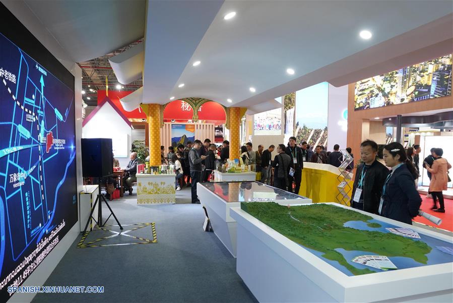 SHANGHAI, noviembre 8, 2018 (Xinhua) -- Personas visitan el estand de Laos en la primera Exposición Internacional de Importaciones de China (CIIE) en Shanghai, en el este de China, el 8 de noviembre de 2018. Un total de 82 países y tres organizaciones internacionales mostraron sus logros en el desarrollo económico y comercial así como sus productos competitivos en 71 estands en el Pabellón de País para el Comercio y la Inversión en la CIIE. (Xinhua/Cheng Li)