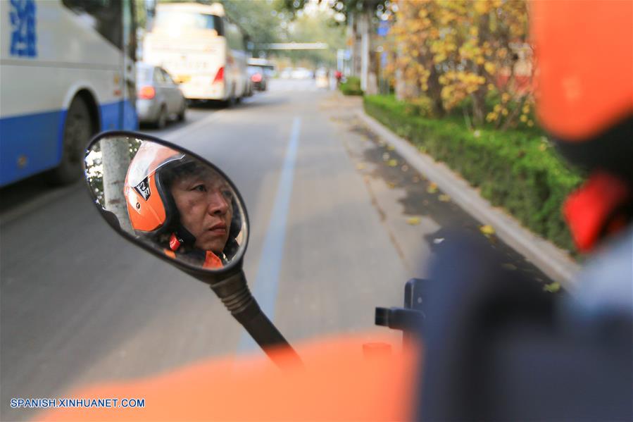 SHANDONG, noviembre 9, 2018 (Xinhua) -- Imagen del 8 de noviembre de 2018 de un repartidor con discapacidad auditiva montando su motocicleta en el distrito Kuiwen de Weifang, en la provincia de Shandong, en el este de China. Un proveedor de servicios de entrega instantánea subcontratado en Weifang, ha logrado contratar a más de 30 pasajeros con discapacidad auditiva que después de capacitaciones vocacionales, han probado ser igualmente competentes que sus compa?eros sin la discapacidad. El equipo de entrega con discapacidad auditiva de la compa?ía, consiste de motociclistas de distintos orígenes: graduados de universidades, madres solteras, exprofesores de conducción y otros. El rango de sus servicios cubre casi todo, desde platillos de restaurantes a medicina y flores. Para los conductores con discapacidad auditiva, la comunicación es su principal barrera, ya que la mayoría de los clientes sabe poco acerca del lenguaje de se?as. Los motociclistas deben usar etiquetas explicando su discapacidad auditiva a los clientes. A pesar de las complicaciones en el trabajo los motociclistas con discapacidad auditiva obtienen una sensación de logro y reconocimiento al recibir el apoyo y respeto de más clientes. (Xinhua/Wang Nan)