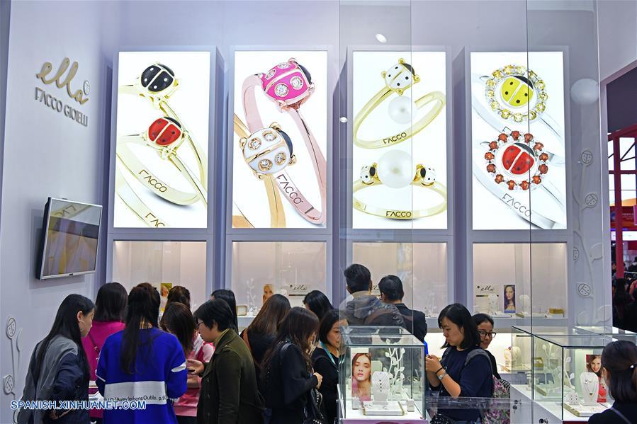 SHANGHAI, noviembre 9, 2018 (Xinhua) -- Visitantes observan joyas en el área de Ropa, Accesorios y Bienes de Consumo de la primera Exposición Internacional de Importaciones de China (CIIE), en Shanghai, en el este de China, el 9 de noviembre de 2018. (Xinhua/Li Xin)