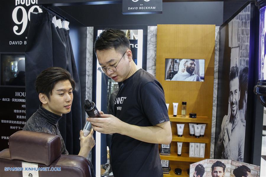 SHANGHAI, noviembre 9, 2018 (Xinhua) -- Un visitante consulta información sobre productos de cuidado de la piel en el estand de L'oreal en el área de Ropa, Accesorios y Bienes de Consumo de la primera Exposición Internacional de Importaciones de China (CIIE), en Shanghai, en el este de China, el 9 de noviembre de 2018. (Xinhua/Zhang Yuwei)