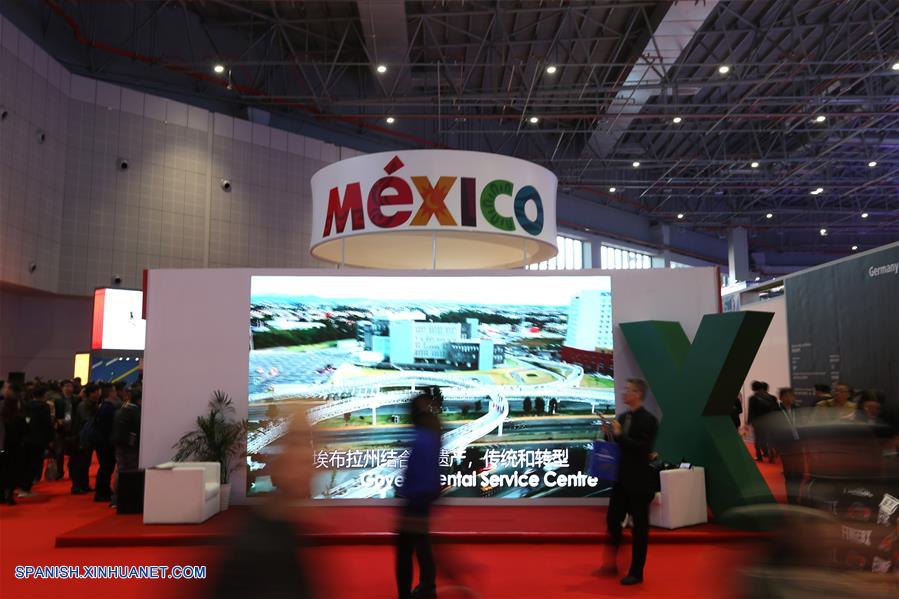 SHANGHAI, noviembre 9, 2018 (Xinhua) -- Visitantes caminan frente al estand de México en la primera Exposición Internacional de Importaciones de China (CIIE), en Shanghai, en el este de China, el 9 de noviembre de 2018. La CIIE es abierta a los grupos de visitantes del 9 al 10 de noviembre. (Xinhua/Zhang Jiayang)