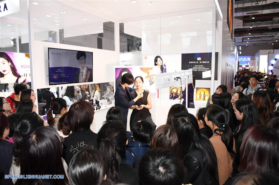 SHANGHAI, noviembre 9, 2018 (Xinhua) -- Personas visitan el área de Ropa, Accesorios y Bienes de Consumo de la primera Exposición Internacional de Importaciones de China (CIIE), en Shanghai, en el este de China, el 9 de noviembre de 2018. La CIIE es abierta a los grupos de visitantes del 9 al 10 de noviembre. (Xinhua/Sadat)