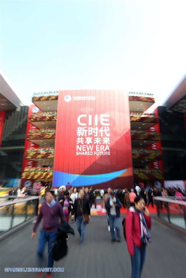 SHANGHAI, noviembre 9, 2018 (Xinhua) -- Visitantes caminan en la sede de la primera Exposición Internacional de Importaciones de China (CIIE), en Shanghai, en el este de China, el 9 de noviembre de 2018. La CIIE es abierta a los grupos de visitantes del 9 al 10 de noviembre. (Xinhua/Zhang Jiayang)