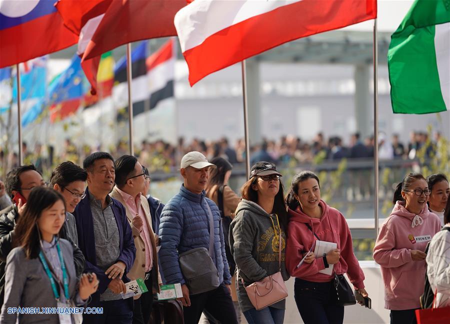 SHANGHAI, noviembre 9, 2018 (Xinhua) -- Visitantes entran a la sede de la primera Exposición Internacional de Importaciones de China (CIIE), en Shanghai, en el este de China, el 9 de noviembre de 2018. La CIIE es abierta a los grupos de visitantes del 9 al 10 de noviembre. (Xinhua/Xing Guangli)