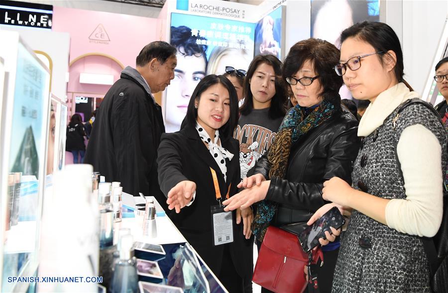 SHANGHAI, noviembre 9, 2018 (Xinhua) -- Personas visitan el área de Ropa, Accesorios y Bienes de Consumo de la primera Exposición Internacional de Importaciones de China (CIIE), en Shanghai, en el este de China, el 9 de noviembre de 2018. La CIIE es abierta a los grupos de visitantes del 9 al 10 de noviembre. (Xinhua/Sadat)