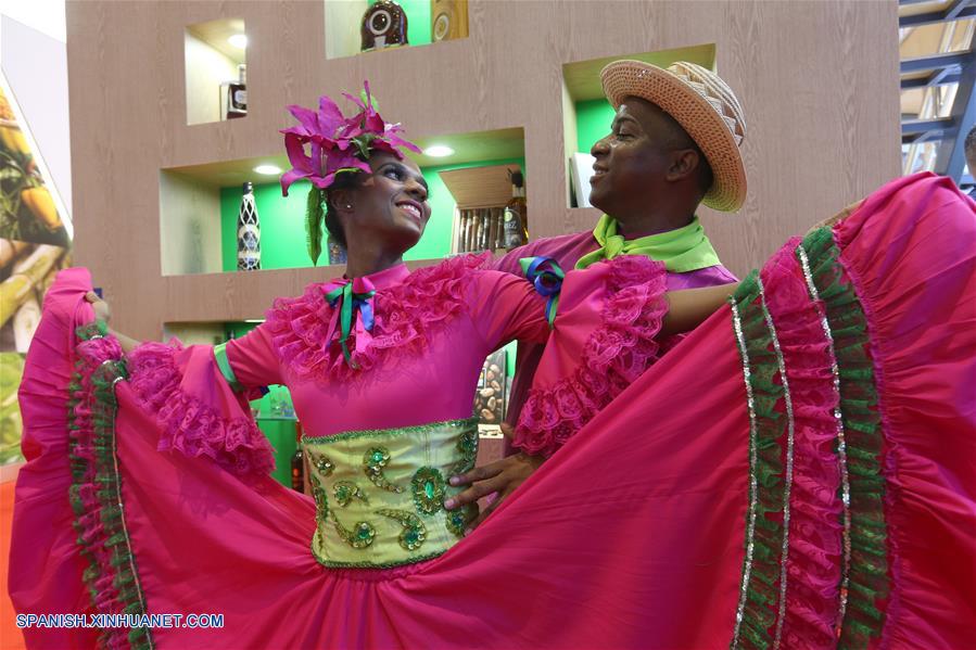 SHANGHAI, noviembre 9, 2018 (Xinhua) -- Personas presentan trajes dominicanos tradicionales en la primera Exposición Internacional de Importaciones de China (CIIE), en Shanghai, en el este de China, el 9 de noviembre de 2018. La CIIE fue inaugurada el lunes en Shanghai, atrayendo a participantes de 172 países, regiones y organizaciones internacionales. (Xinhua/Zhang Jiayang)