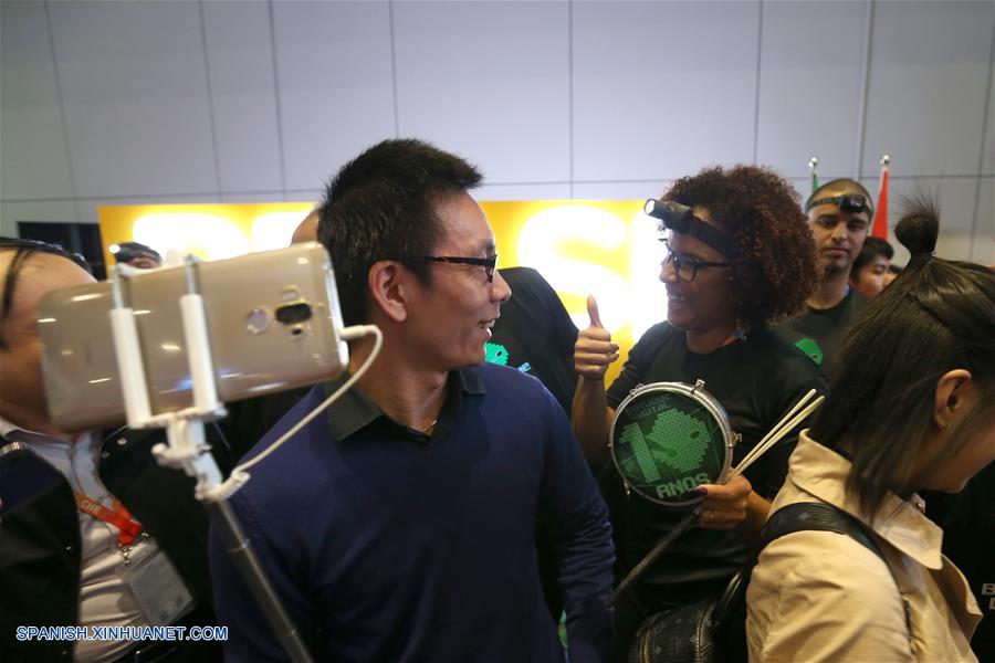 SHANGHAI, noviembre 9, 2018 (Xinhua) -- Un visitante se toma "selfies" con artistas en el estand de Brasil en la primera Exposición Internacional de Importaciones de China (CIIE), en Shanghai, en el este de China, el 9 de noviembre de 2018. La CIIE fue inaugurada el lunes en Shanghai, atrayendo a participantes de 172 países, regiones y organizaciones internacionales. (Xinhua/Zhang Jiayang)