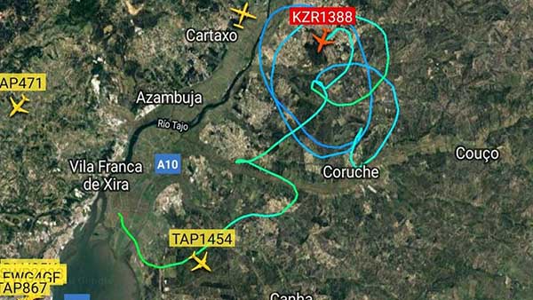 En las imágenes de radar se puede comprobar la trayectoria errática del avión, que ha mantenido en vilo a los portugueses. Se desconocen las causas que han provocado la pérdida de control del aparato que tenía como destino El Cairo.