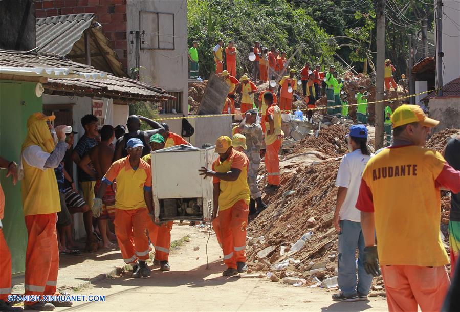 RIO DE JANEIRO, noviembre 11, 2018 (Xinhua) -- Imagen proveída por AGENCIA ESTADO, de bomberos laborando en el retiro de escombros luego de un deslizamiento de tierra, en la comunidad Morro da Boa Esperanca de Niterói, en la región metropolitana de Río de Janeiro, de Brasil, el 11 de noviembre de 2018. Los equipos de rescate elevaron el domingo a 14 el número de víctimas mortales por el deslizamiento de tierra provocado por las fuertes lluvias en Niterói, en la región metropolitana de Río de Janeiro, de Brasil. Los hechos ocurrieron durante la madrugada del viernes al sábado en la comunidad Morro da Boa Esperanca de Niterói, región donde se registraron intensas lluvias durante los últimos días. (Xinhua/Maíra Coelho/AGENCIA O DIA/AGENCIA ESTADO)