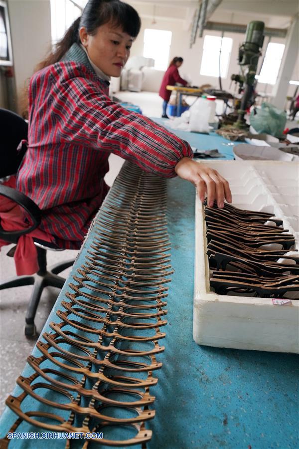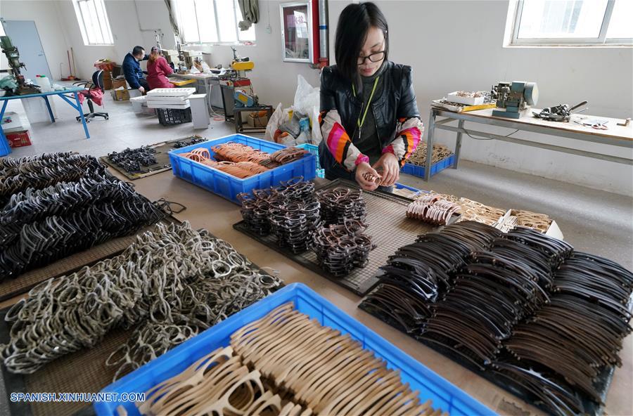 JIANGXI, noviembre 13, 2018 (Xinhua) -- Una trabajadora procesa monturas de gafas de bambú, en la empresa de Luo Xiaoping, en el condado de Fengxin, provincia de Jiangxi, en el este de China, el 13 de noviembre de 2018. Luo Xiaoping, de 42 a?os de edad, regresó a su ciudad natal en Fengxin y comenzó su negocio de monturas de gafas de bambú en 2014. Con varios avances técnicos, Luo y su equipo han solicitado múltiples patentes, y han hecho que sus productos amigables con el medio ambiente lleguen a los mercados extranjeros. (Xinhua/Song Zhenping)