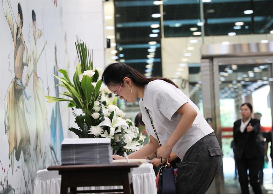 HONG KONG, noviembre 13, 2018 (Xinhua) -- Imagen del 12 de noviembre de 2018 de una lectora dejando un mensaje en el libro de condolencias en la Galería Jin Yong del Museo del Patrimonio de Hong Kong, en Hong Kong, en el sur de China. Jin Yong, cuyo nombre real era Louis Cha Leung-yung, es considerado unánimemente como el escritor más importante del género "wuxia" (artes marciales y caballería) del siglo XX. Murió el 30 de octubre a los 94 a?os de edad. Su funeral se llevó a cabo el 12 de noviembre en la Casa de Funerales de Hong Kong. (Xinhua/Wu Xiaochu)