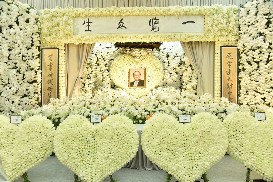 HONG KONG, noviembre 13, 2018 (Xinhua) -- Imagen del 12 de noviembre de 2018 de flores colocadas para rendir tributo a Jin Yong, en la Casa de Funerales de Hong Kong, en Hong Kong, en el sur de China. Jin Yong, cuyo nombre real era Louis Cha Leung-yung, es considerado unánimemente como el escritor más importante del género "wuxia" (artes marciales y caballería) del siglo XX. Murió el 30 de octubre a los 94 a?os de edad. Su funeral se llevó a cabo el 12 de noviembre en la Casa de Funerales de Hong Kong. (Xinhua/Wu Xiaochu)
