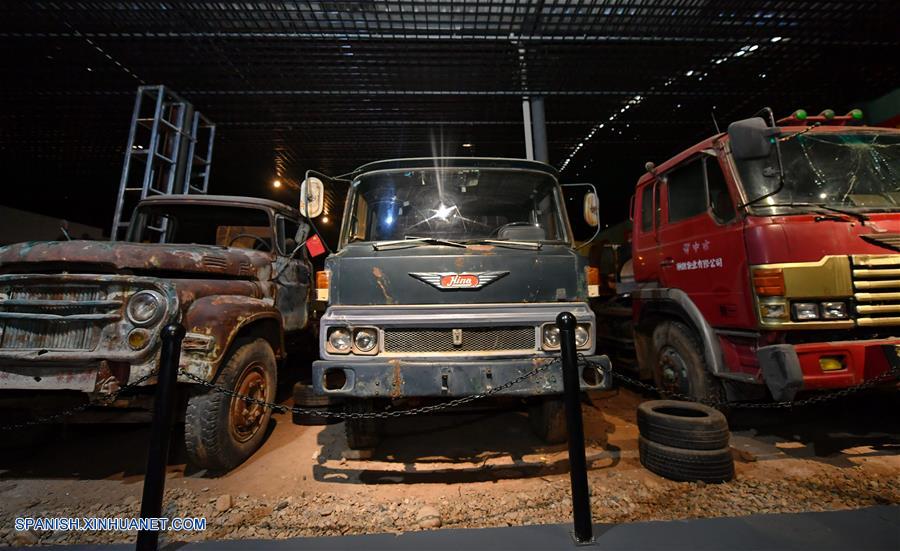 TAIYUAN, noviembre 14, 2018 (Xinhua) -- Una narradora presenta excavadoras en un museo especializado en vehículos antiguos en Taiyuan, capital de la provincia de Shanxi, en el norte de China, el 14 de noviembre de 2018. Cerca de 400 vehículos y bicicletas antiguas son exhibidas en el museo. (Xinhua/Cao Yang)