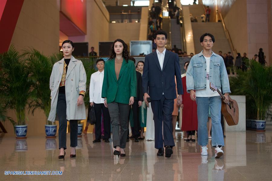 BEIJING, noviembre 14, 2018 (Xinhua) -- Modelos presentan dise?os de moda de cuatro décadas durante en una gran exposición para conmemorar el 40 aniversario de la reforma y apertura de China celebrada en el Museo Nacional de China, en Beijing, capital de China, el 14 de noviembre de 2018. La exposición se inauguró el martes en Beijing. (Xinhua/Meng Dingbo)