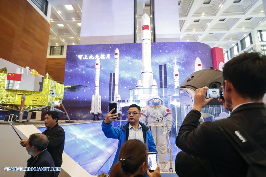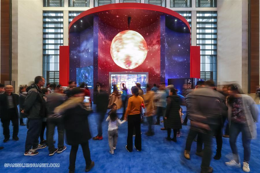 BEIJING, noviembre 14, 2018 (Xinhua) -- Personas observan un modelo del Radiotelescopio de Apertura Esférica de 500 metros (FAST, por sus siglas en inglés) en una importante exposición para conmemorar el 40 aniversario de la reforma y apertura de China, en el Museo Nacional de China, en Beijing, capital de China, el 14 de noviembre de 2018. La exhibición fue inaugurada el martes. (Xinhua/Shen Bohan)