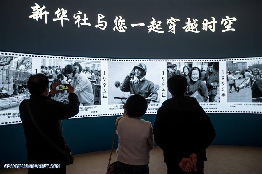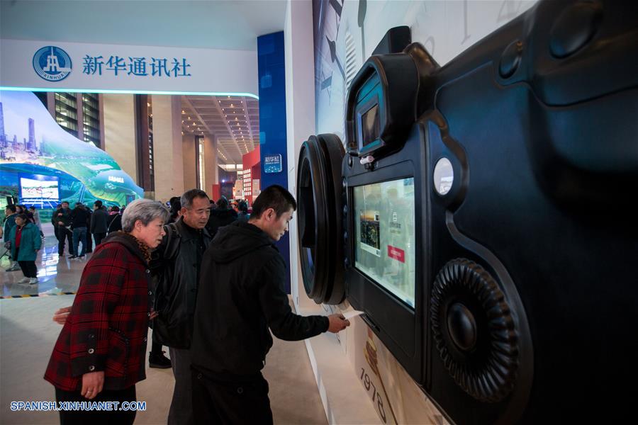 BEIJING, noviembre 14, 2018 (Xinhua) -- Personas visitan la sala de exposición de la Agencia de Noticias Xinhua durante una gran exposición para conmemorar el 40 aniversario de la reforma y apertura de China celebrada en el Museo Nacional de China, en Beijing, capital de China, el 14 de noviembre de 2018. (Xinhua/Shen Bohan)