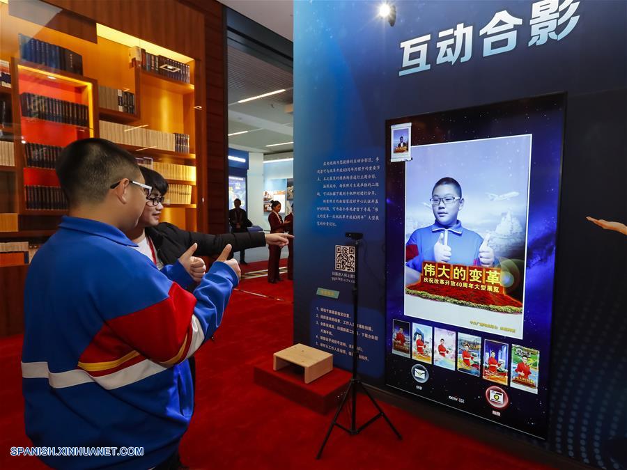 BEIJING, noviembre 14, 2018 (Xinhua) -- Visitantes toman fotografías en una gran exposición para conmemorar el 40 aniversario de la reforma y apertura de China celebrada en el Museo Nacional de China, en Beijing, capital de China, el 14 de noviembre de 2018. La exposición se inauguró el martes en Beijing. (Xinhua/Li Xin)
